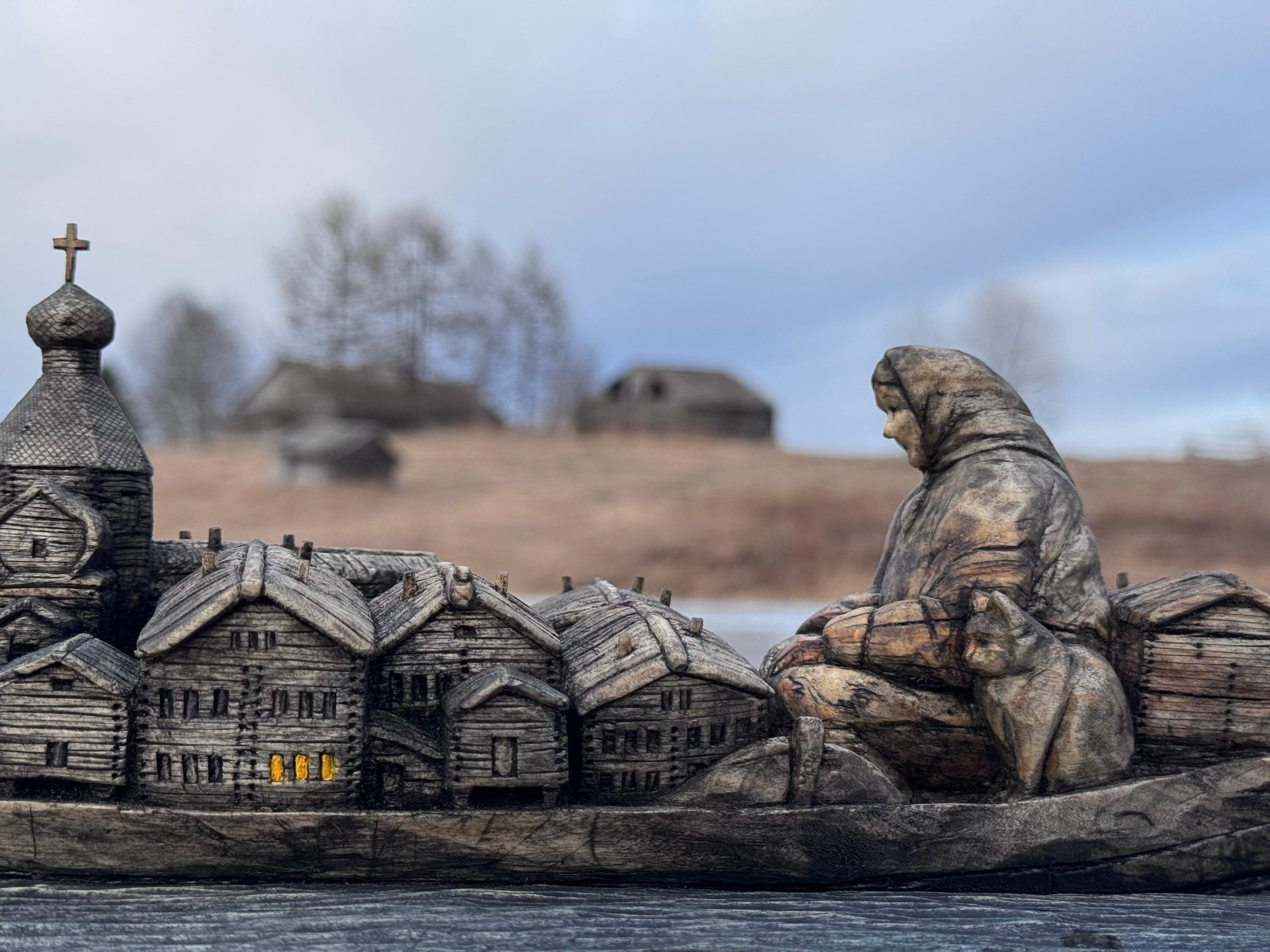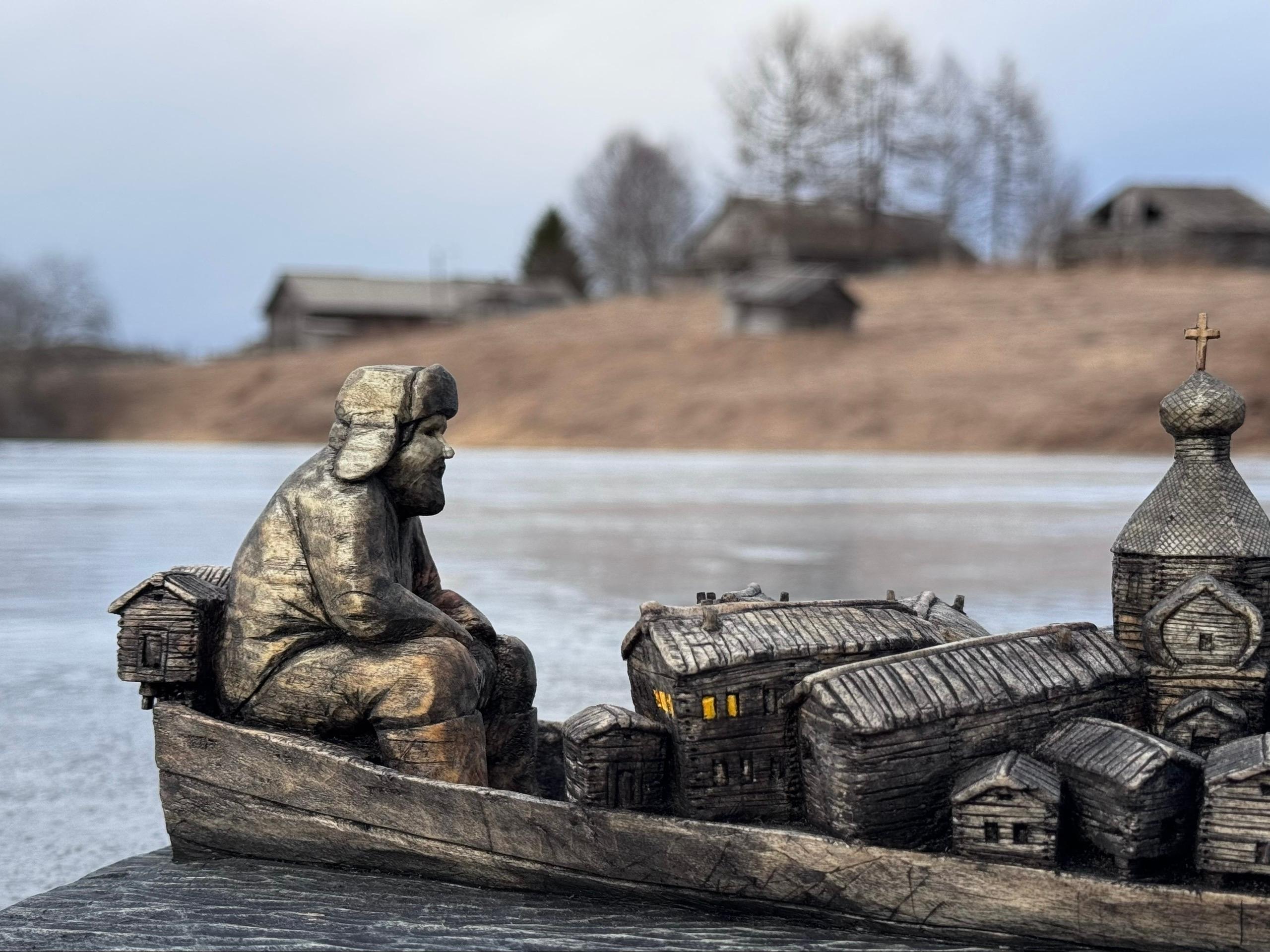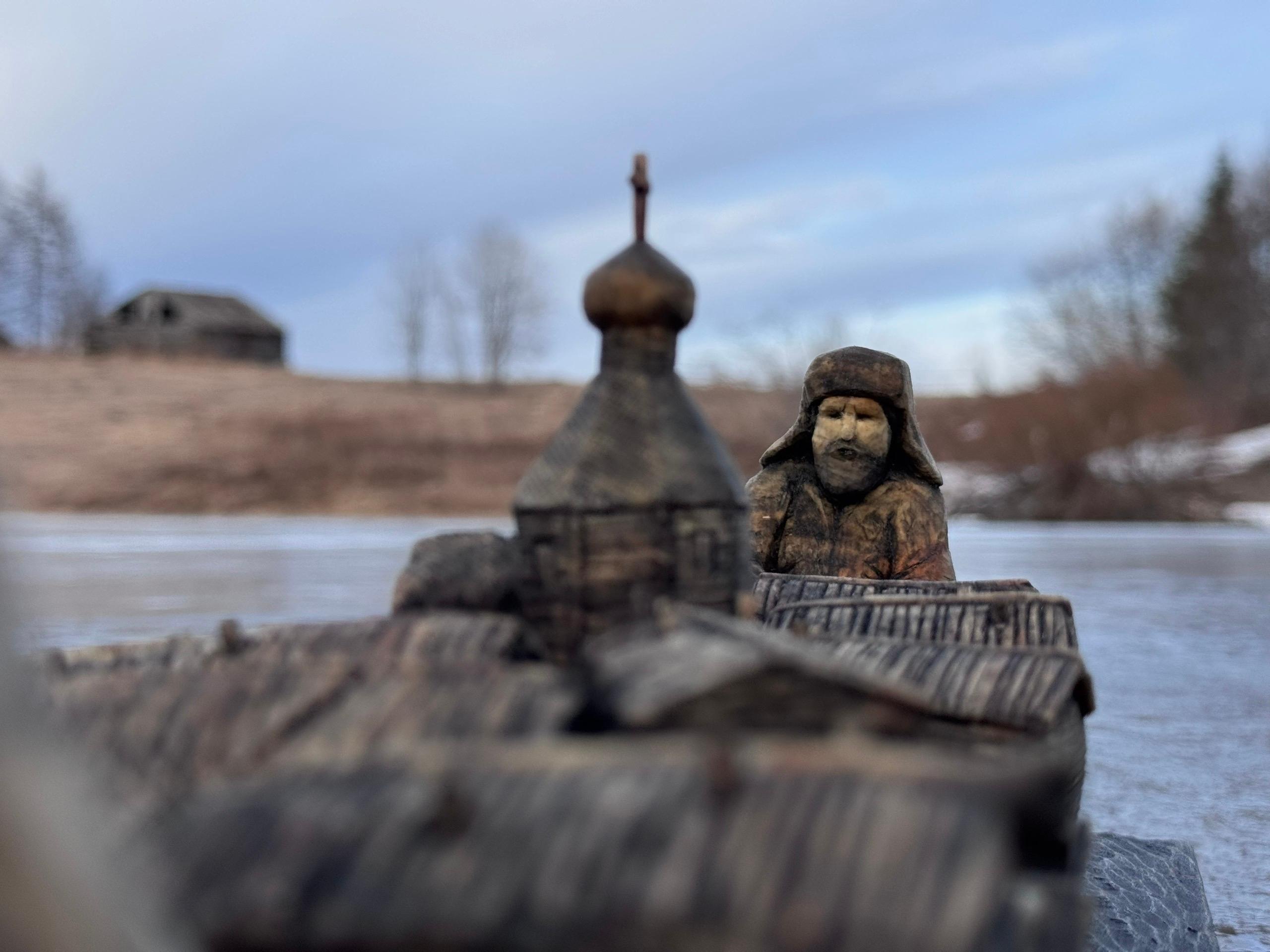 Деревянная скульптура под названием «Половодье» создана Алёной Вальковой под впечатлением от масштабного разлива рек в Архангельской области в 2020 году, когда многие населенные пункты оказались затоплены.