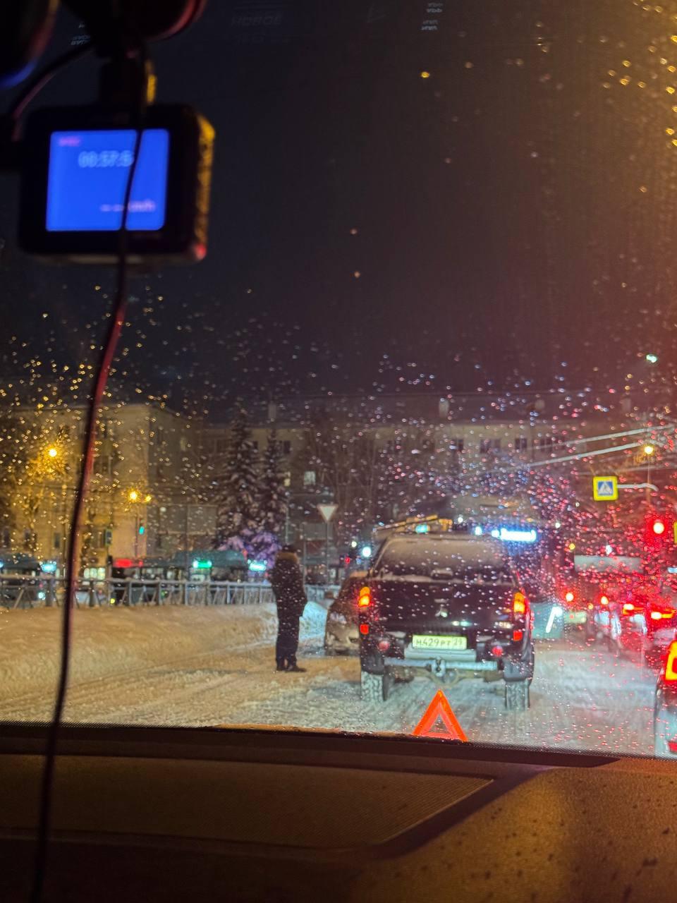 Авария на Кузнечевском мосту в Архангельске привела к образованию затора. Движение транспорта затруднено как в сторону Соломбалы, так и в центр города.